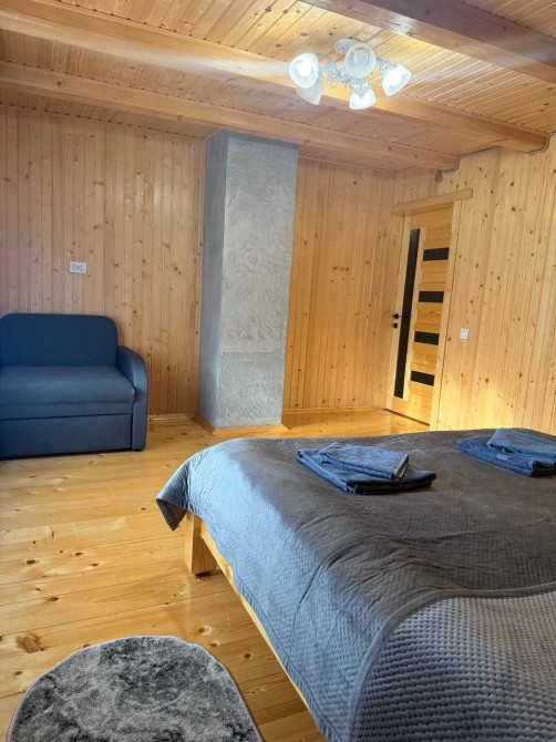 627 Сучасний будинок в сосновому лісі *Опис: Цей затишний будинок ідеально підходить для тихого сімейного відпочинку або романтичної подорожі. Тут ви знайдете: – Простору вітальню з каміном, яка створить атмосферу тепла і затишку. – Дві спальні з комфортними ліжками для повноцінного відпочинку. – Швидкісний інтернет, щоб залишатися на зв’язку. – Кондиціонер для комфортного перебування в будь-яку погоду. – Сучасну кухню з усім необхідним посудом. – Санвузол з душовою кабіною. – Генератор, який забезпечить світло навіть у разі відключення електрики. *Територія: На прилеглій території ви зможете насолодитися природою та відпочинком: – Альтанка з мангальною зоною, решітками та шампурами. – Гамак для релаксу серед сосен. – Зона для вечірніх посиденьок біля вогню. – Невеликий басейн з пісочною зоною для освіження в спекотні дні. – Вихід у сосновий ліс для прогулянок та збирання грибів. – Поруч велике озеро, де можна рибалити. *Вартість проживання: – Будні дні (ПН-ЧТ): 4500 грн./добу – Вихідні (ПТ,СБ): 6000 грн./добу – Неділя:5000 грн./добу – Святкові дні за окремим тарифом. *Деталі: – Час заїзду: з 14:00, виїзду: до 12:00. – Страхова застава: 2000 грн (повертається при виїзді у разі відсутності пошкоджень). – При бронюванні від 3-х діб – знижка! Будинок ідеально підходить для комфортного відпочинку до 4 осіб. Бронювання доступне через будь-який зручний месенджер: WhatsApp, Viber, Telegram. Забронюйте своє ідеальне місце для відпочинку вже сьогодні!