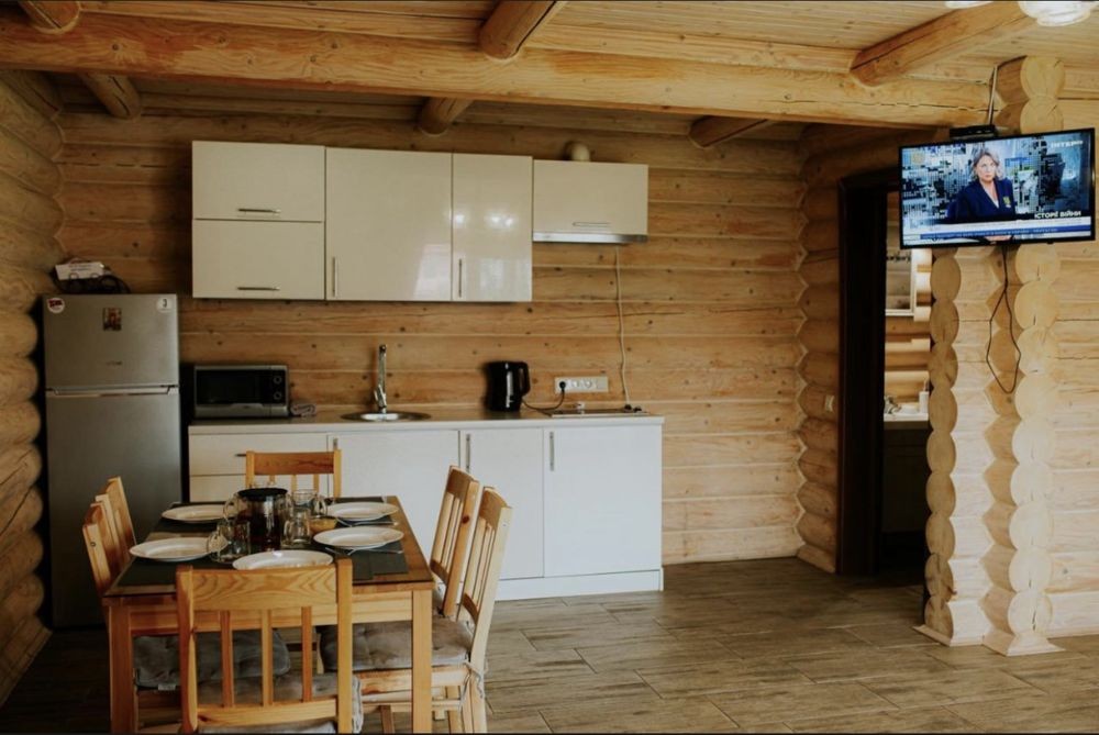 Містить спальне місце на другому поверсі та з диваном та кухнею зі всім необхідним обладнанням для приготування страв та відпочинку , мангал та тераса з власним чаном!