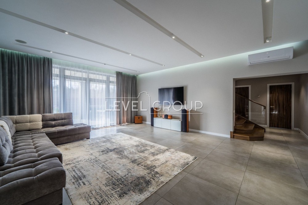 В доме: студия, терраса (32 кв.м.), кабинет, 4 спальни, 3 санузла, 2 котла, теплые водяные полы, кондиционирование, очистка воды, ГЕНЕРАТОР, все коммуникации автономные, техника и мебель ведущих мировых производителей, охрана, обслуживание дома и участка, видеонаблюдение.