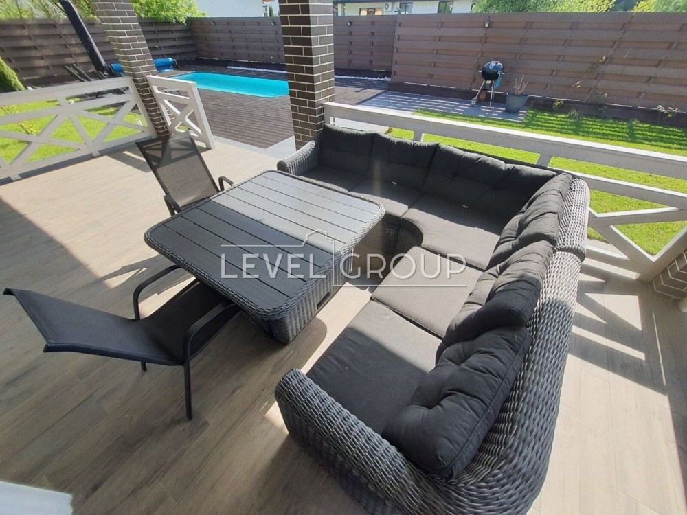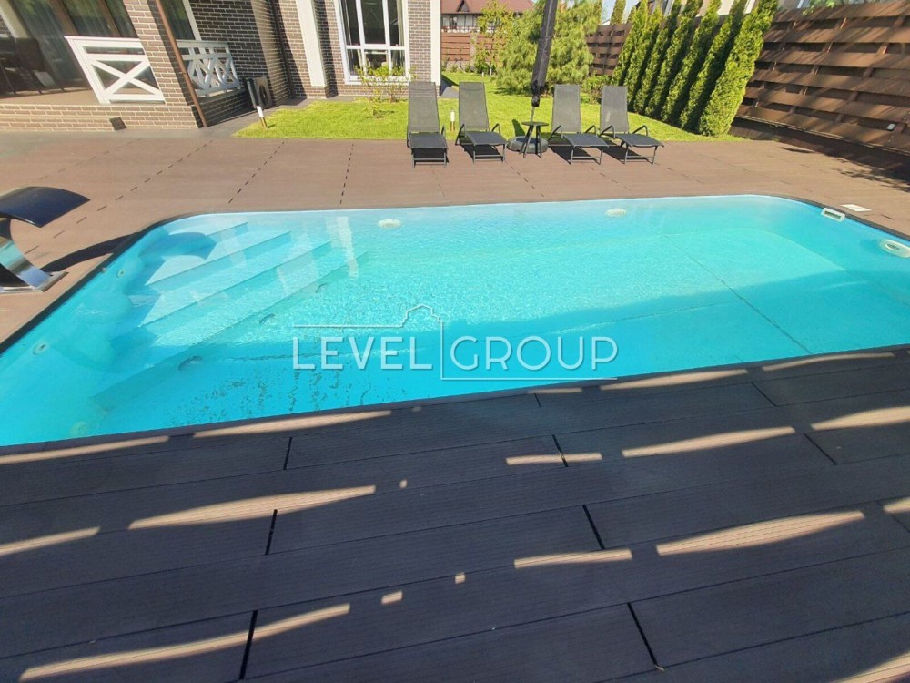 На ділянці: паркування відкрите, зарядка для електромобілів, сад, ландшафтний дизайн, автополив, басейн з підігрівом (тепловий насос), тераса для лежаків, вихід з тераси будинку до басейну та зони відпочинку. дитячі та спортивні майданчики, дитячий садок та школа, річка з набережною, заповідний ліс, ринок, супермаркет Favore, ресторани Harvest, Franco, Queen, Sportlife. Телефонуйте!.
