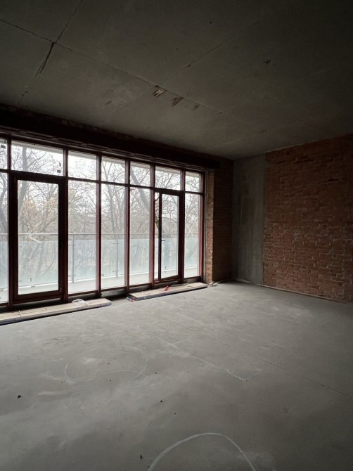 Вітальня та кухня мають панорамні вікна та виходи на терасу з видом на парк і центр міста.