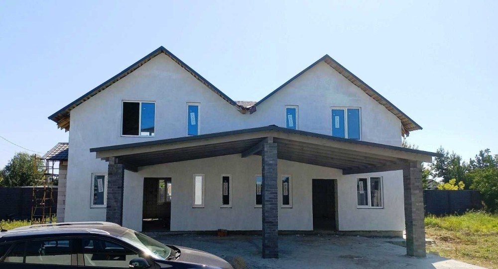 Без % Продам новий будинок в невеликому затишному котеджному містечку Sunrise Village в с. Крушинка Фастівського (раніше Васильківського) району, 16км по Одеській трасі. Містечко розраховане на 7 родин, передбачена охорона, централізований вивіз сміття. Тип будинку - дуплекс. Загальна площа будинку 106кв.м, житлова площа 60 кв.м., 2 с / у, навіс для авто. В будинку: стяжка, штукатурка, передбачена тепла підлога, всі комунікації: електрика, вода-свердловина, автономна каналізація, газ заведений на територрію містечка, вікна металопластик, дах металочерепиця, зовнішнє утеплення будинку. Ділянка 4, 5 сотки. Недалеко озеро, березовий гай 10 хв пішки. Всі роботи будуть завершені протягом місяця. Ціна від забудовника 79000у.е. Без комісії для Покупця. Можливе розтермінування.