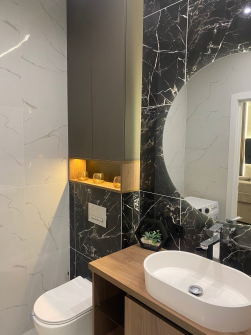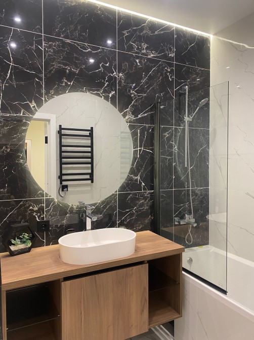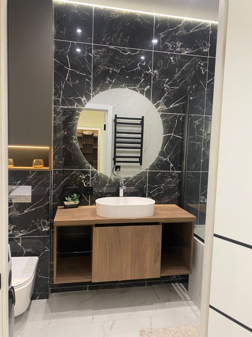 — Ванная комната под мрамор, бойлером и стиральной машиной