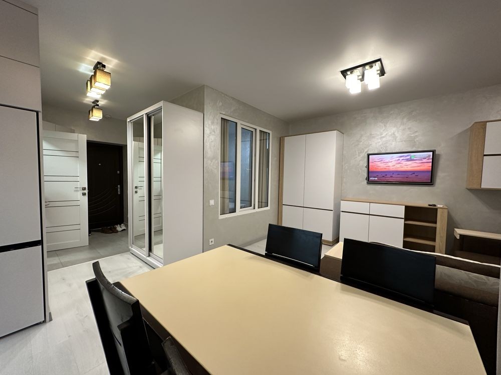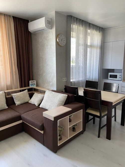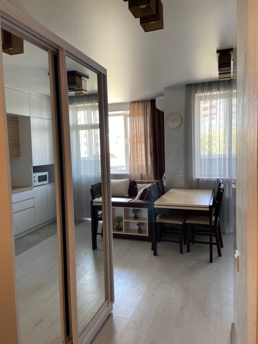 Качественный ремонт продуман до мелочей. В коридоре шкаф купе, прихожая. Отдельная спальня с кроватью. Огромная кухня гостиная с встроенной мебелью и техникой. Гостевой диван, телевизор и кондиционер. Полноценный балкон. Теплый пол. Индивидуальное отопление и счётчики, двухконтурный газовый котел.