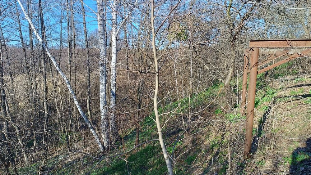 Хоч ділянка з будинком і знаходиться в межах щільно заселеного району (до однієї зупинки маршрутки 400 метрів, до іншої - 600 метрів, до зупинки електрички 400 метрів), все ж розташована доволі відокремлено: впритул межує лише з однією сусідською ділянкою. З двох сторін межі ділянки переходять в крутий яр, зарослий луками та лісом, за яким внизу розташовується велике болото-озеро (колишнє русло р. Ворскла). Тож прямо з двору (навіть з двох вікон будинку) відкривається гарний вид з пагорба - влітку, звісно, трішки заростає, але при бажанні можна все облагородити, отримавши фактично природу на місці проживання.