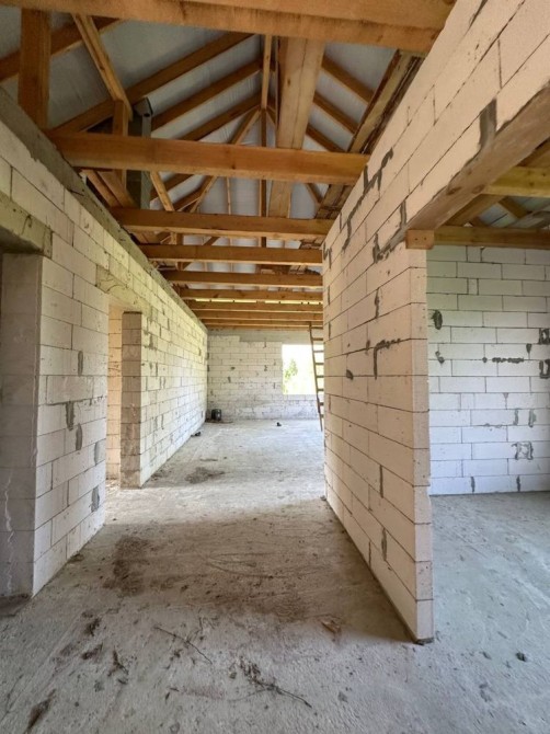 Проведено каналізацію та воду від свердловини (спільна на два будинки, глибина 80 м, насос і приямок встановлені).