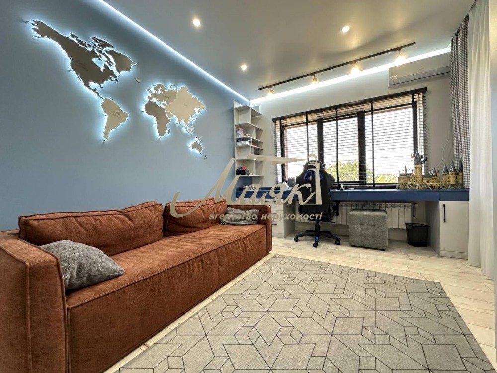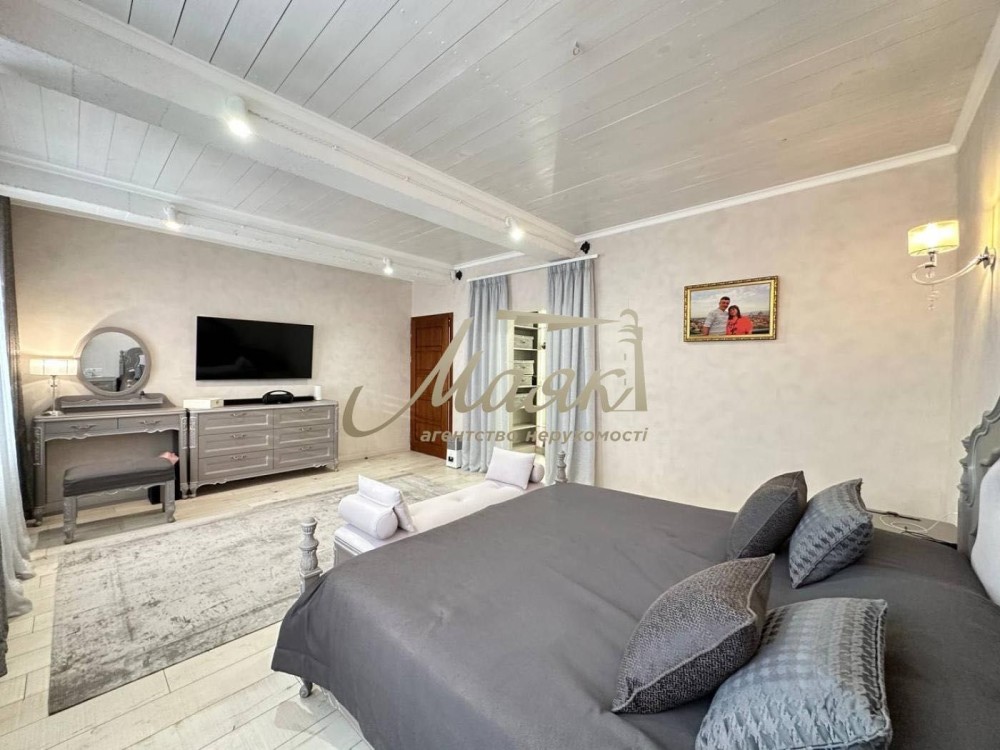 Пропонуємо придбати розкішний, двоповерховий будинок з новим дизайнерським ремонтом в сучасному стилі, розташований у вигідній та екологічно безпечній локації Великого лугу. Побудований та облаштований виключно з дорогих та преміальних матеріалів. В будинку загальною площею 350 кв.м. професійно виконано ремонт з зручним та практичним плануванням, - на першому поверсі знаходиться: передпокій, коридор, простора кухня-вітальня з виходом на терасу та зонуванням місця для відпочинку з каміном і зони столової, побутова кімната, гостьовий санвузол, окрема зона для басейну, бойлерна кімната, сходи на другий поверх; на другому поверсі знаходится: доросла спальна кімната зі своєю гардеробною кімнатою, дитяча спальна кімната з окремою зоною для відпочинку та зоною для навчання, гостьова спальна кімната, кабінет, коридор з виходом на балкон, ванна кімната з душовою кабіною та ванною. Висота стелі першого поверху 4 метри, другого 3 метри. Будинок обладаний всією необхідною топовою технікою, меблями, сантехнікою, електрообладаннням надійних світових вробників та повністю готовий для проживання. Земельна ділянка площею 12 соток, правильної прямокутньої форми, право власності договір купівлі-продажу, присвоєно кадастровий номер, автоматичний полив, розведено освітлення, окрема зона для паркування авто ( навіс на 2 місця), є окрема будівля для зберігання інструментів та обслуговування ділянки з повноцінним підвалом, генератор на 12 кВт автоматичні ворота, сигналізація, відеонагляд, ідеальне місцезнаходження будинку в тихому безпечному місці, нова асфальтована вулиця. Улюблиною власників та гостей родзинкою на земельній ділянці є зона для відпочинку - окрема будівля з мангальною зоною, та SPA зоною, яка включає в себе кімнату длія відпочинку, сауну, душову кімнату, всі окремі комунікації.По комунікаціям: центральне водопостачання, газ, потужність електроенергії 21 кВт, напруга 380 Вт, водовідведення - септик; опалення, - двоконтурний газовий котел, електрокотел, тепла підлога та радіатори, швідкісний інтернет, система очистки води. Будинок знаходиться у відмінному стані!Телефонуйте.