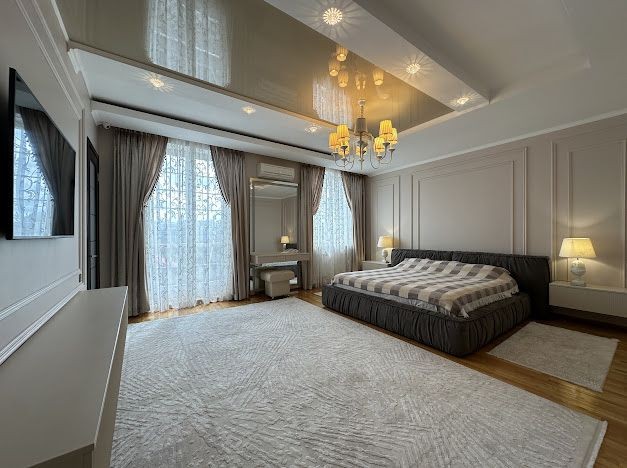 Вся сантехника villeroyboch, бытовая техника Boch, люстры Италия, межкомнатные двери натуральное дерево, пол паркет, стены венецианская штукатурка, дорогие качественные обои.