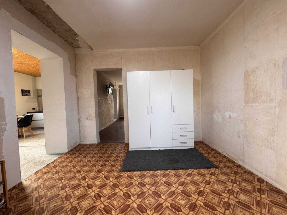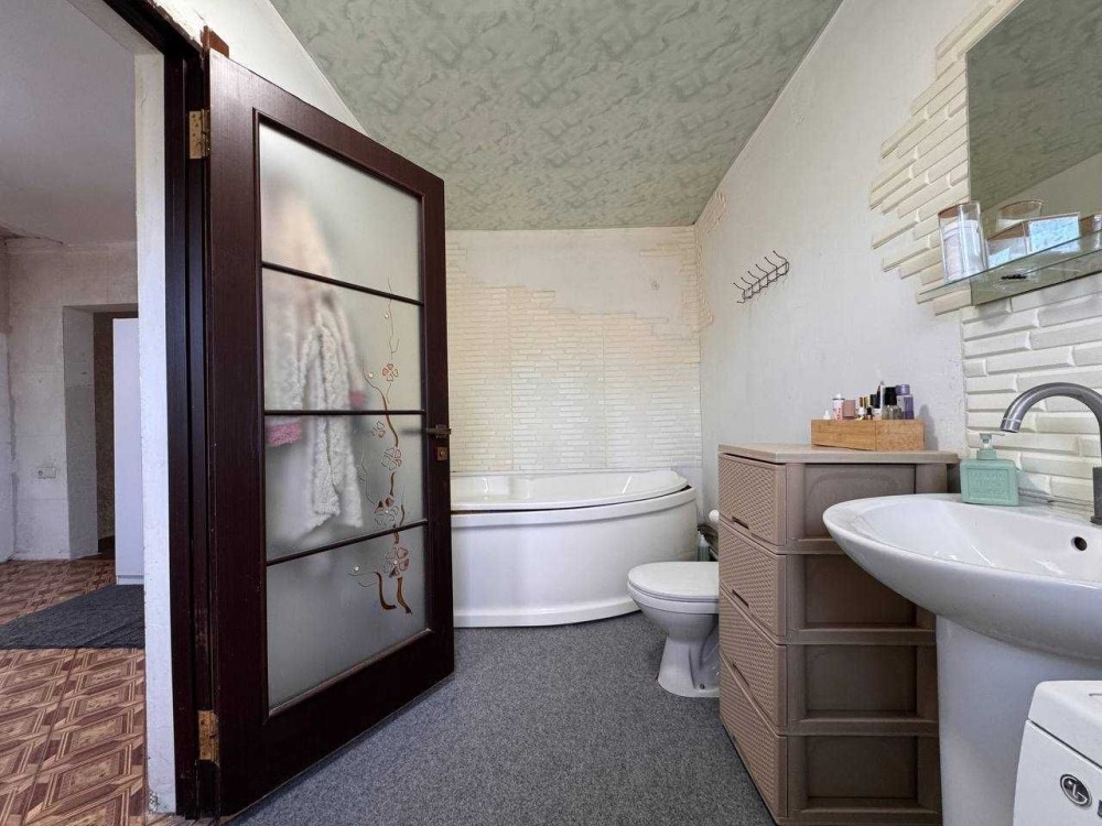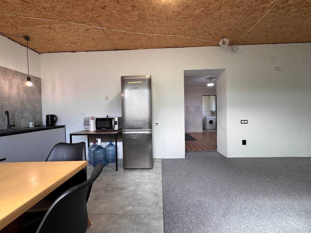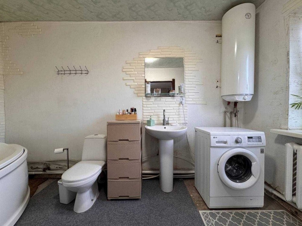 • Дом 80 м²: просторный холл, кухня-студия 20 м², санузел, 2 спальни и хозяйственная комната. Высокие потолки, новая крыша над кухней (пристройкой), металлопластиковые окна.