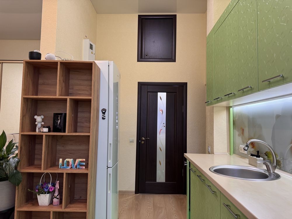 • Уникальная планировка: кухня-студия с выходом на балкон + спальня, просторный санузел, потолки 4 м, кладовая-ниша.