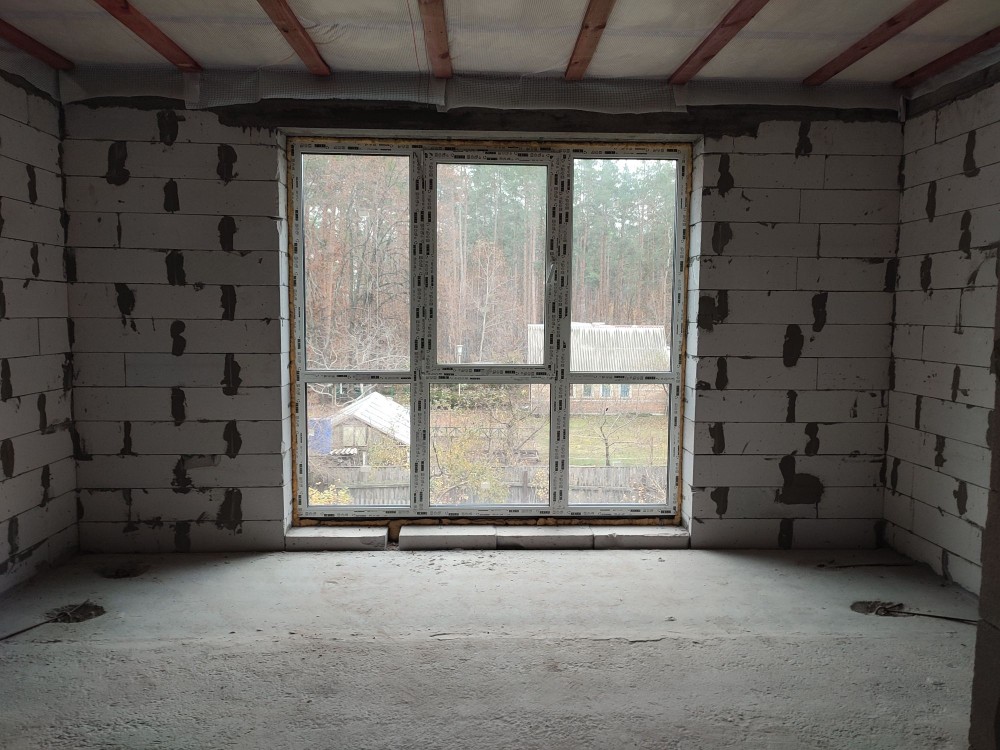 Загальна площа будинку 86м² (3 окремих кімнати: одна кімната на 1му поверсі, 2і на другому), 2 с/в (на першому і другому поверсі ), велика кухня-вітальня з виходом на терасу (1.4 сотки) + мансарда 42м² (3ій поверх). Будинок без оздоблювальних робіт.