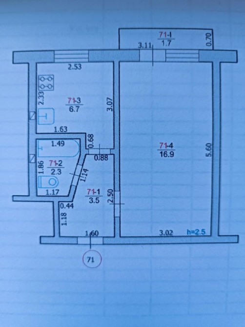 • Площадь кухни 6.7 м2
