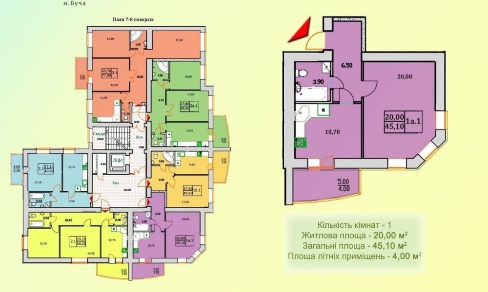 В продажі 1к квартира 45.3м та коморка на одній площадці з квартирою 5.1 м