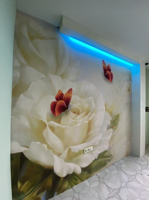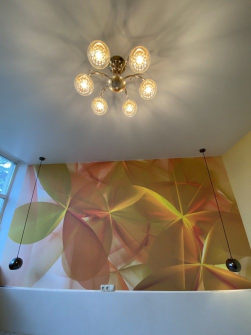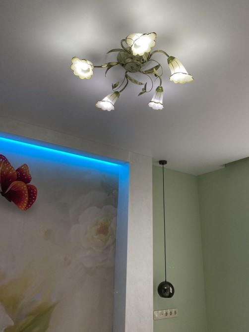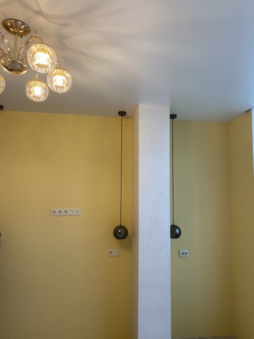 Стіни фарбовані, стелі натяжні, міжкімнатні двері виготовлені з натурального дерева. Якісна електрика і фурнітура до неї, стильні італійські люстри і світильники. Підвіконня зі штучного каменю.