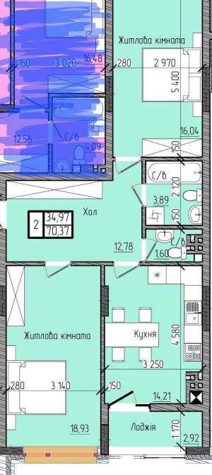 • Общая площадь 70.37 м2