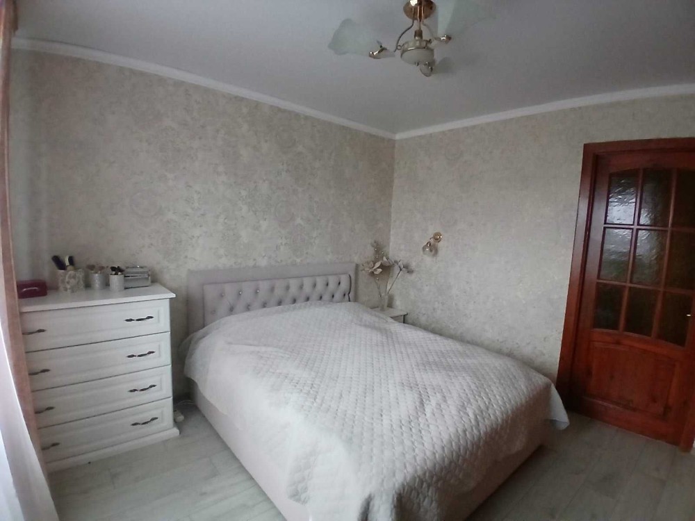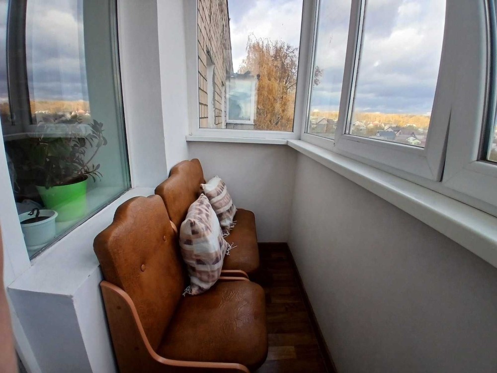 Про квартиру: знаходиться на 5 поверсі. Загальна площа 51 кв.м. Два балкони (на різні сторони), обшиті сайдингом, з металопластиковими вікнами. Площа жилих кімнат 17,6 і 12,3 кв.м. Санвузол суміжний. Кухня майже 9 кв.м. В квартирі зроблений капітальний ремонт: стіни, електропроводка, натяжні стелі, ламінат, лінолейм у кухні, металопластикові вікна і двері на балкон. В квартирі встановлені газовий лічильник і лічильники на воду. Ремонт робили для себе. Частина меблів і техніки залишається майбутнім господарям.