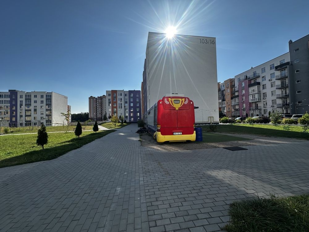Маршрутка біля входу в ЖК (25 хв до метро Житомирська).