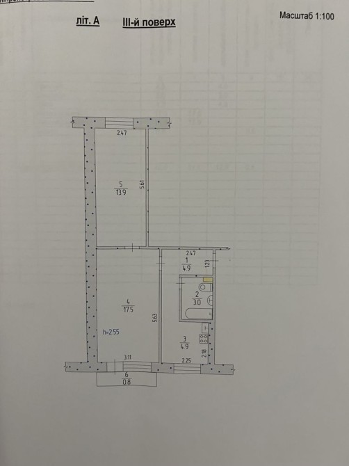• Площадь кухни 5 м2