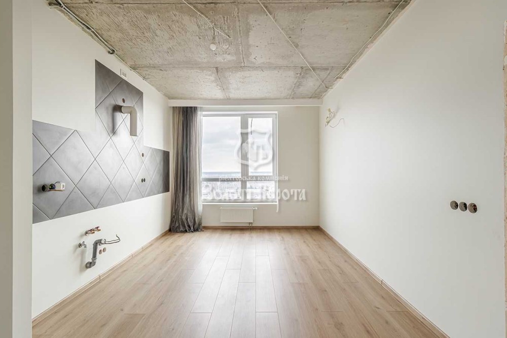 З вікон відкривається прекрасний панорамний вид на озеро Вирлиця, що додає атмосферу спокою та гармонії. Завдяки високим стелям (2,7 м) квартира виглядає ще просторішою, а якісний євроремонт створює відчуття комфорту та сучасного стилю. Стіни пофарбовані в нейтральні тони, а робоча поверхня на кухні оздоблена кахлем для практичності та зручності. Суміжний санвузол з ванною має стильне плиткове покриття на підлозі та стінах.