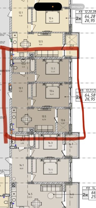 • Общая площадь 64.58 м2