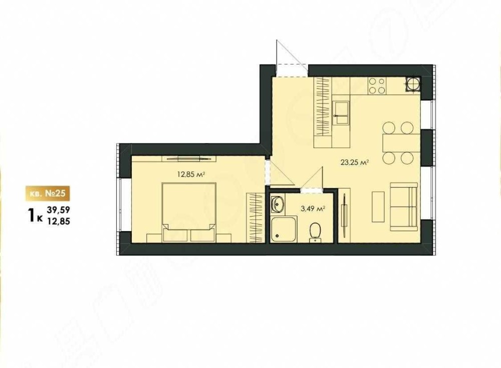 Будинок 4 поверховий, квартира 39.5 кв.м, кімната 12.85 кв.м кухня 23.25 кв.м санвузол 3кв.м