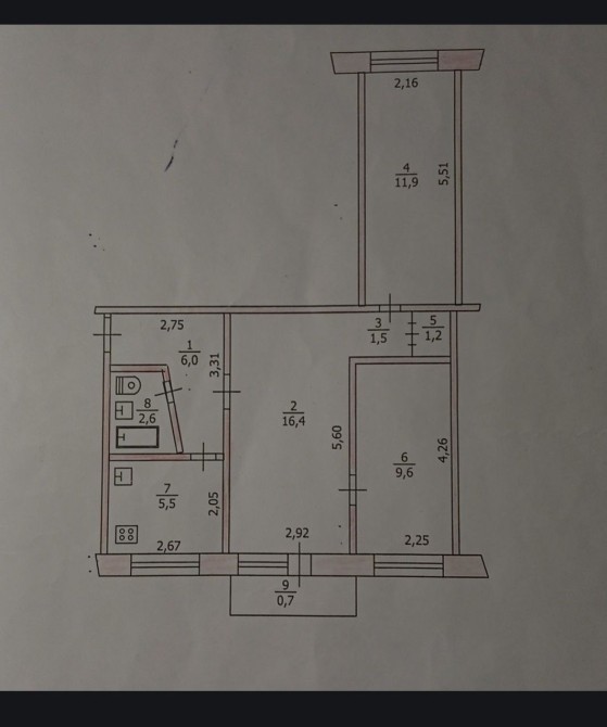 • Площадь кухни 6 м2