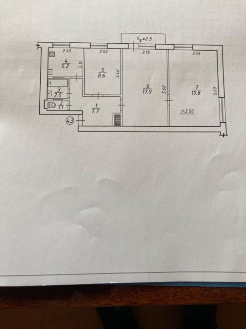 • Площадь кухни 5.2 м2