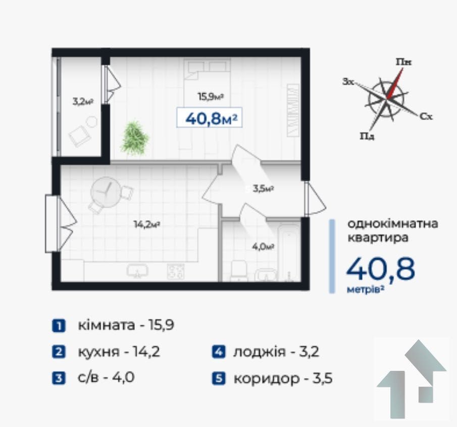 Квартира 43,3 м2 біля озера, подано на здачу ЖК - фото 4