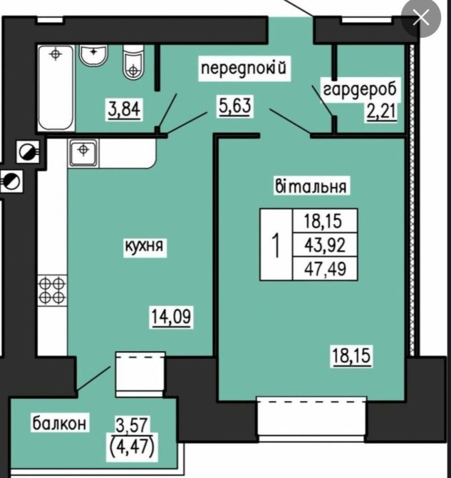 Квартира 47.5 м.кв. Лучаківського