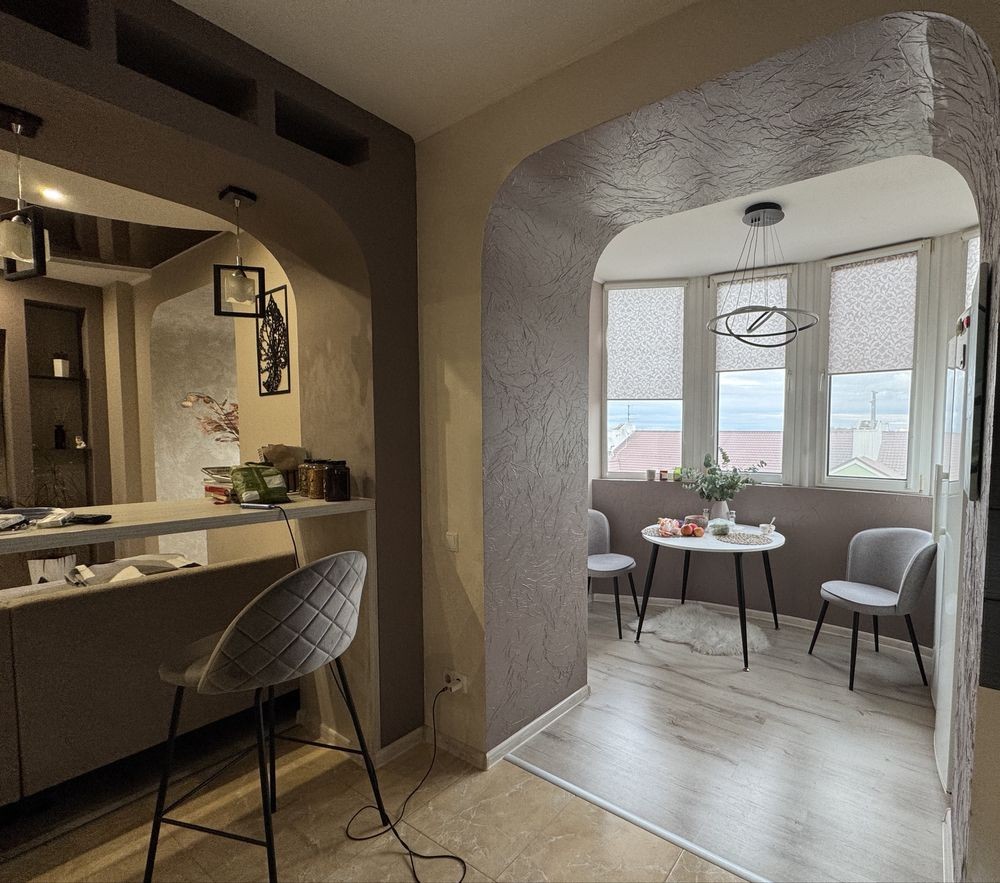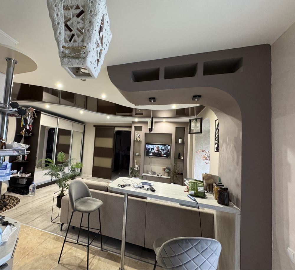 Квартира перепланована, є можливість між кухнею та кімнатою зробити перегородку . Зроблений якісний ремонт. Тепла водяна підлога по всій площі, встановлений кондиціонер тепло, холод.
