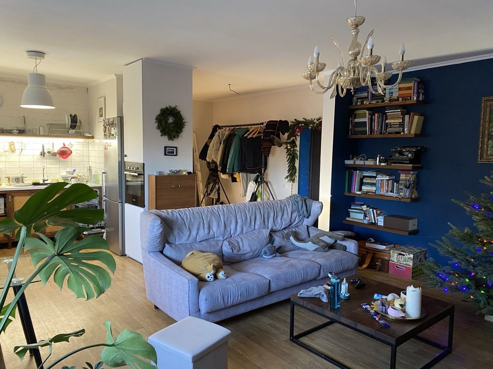 Класна простора квартира, вдале планування, бо вітальня з кухнею та балкон виходять на різні сторони, з вітальні схід сонця, з балкону- захід, вдень квартира в тіні