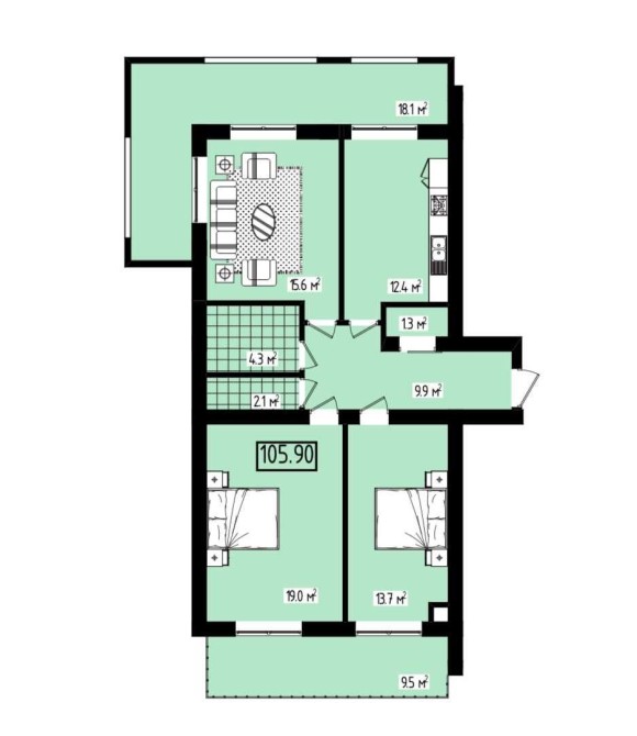 Площа: 105,9 м² — максимум простору для ваших ідей.