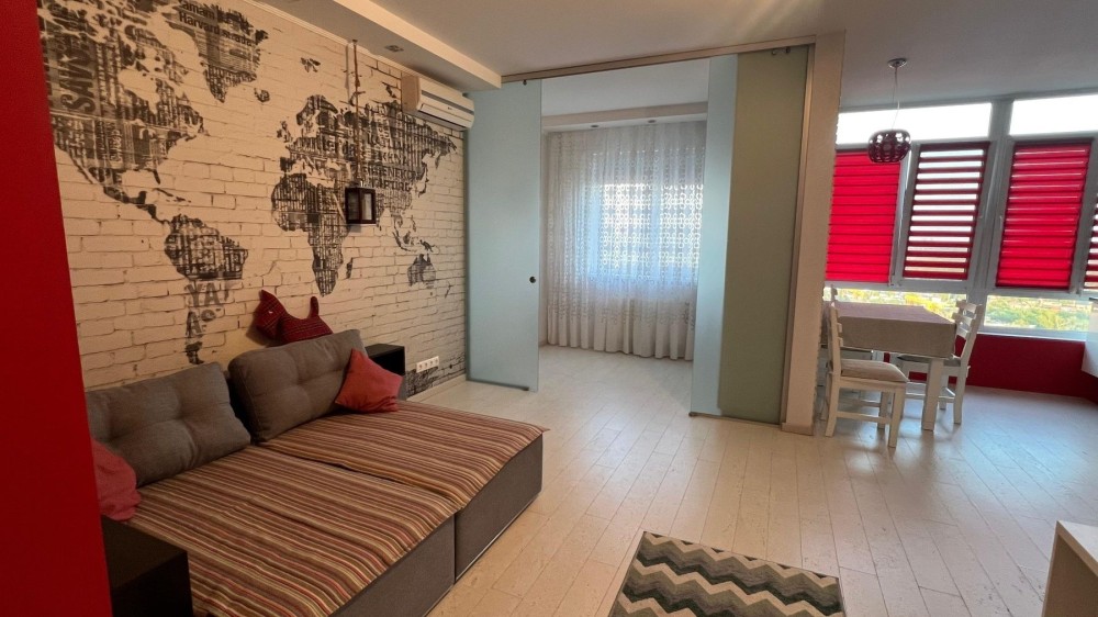 Здам 1-кімнатну квартиру на перехресті пр. О. Поля та вул. Ульянівської. 6 поверх 14-поверхового будинку. Функціональне планування: кухня, спальня, робочий кабінет, санвузол, кладова. Дві лоджії, одна з підігрівом підлоги. Капітальний ремонт, сучасні меблі та техніка. Теплі підлоги у прихожій, кухні та лоджії, інверторний кондиціонер. Для 1 людини або пари. Без тварин. 15 000 грн + ком. послуги комісія: 80%
