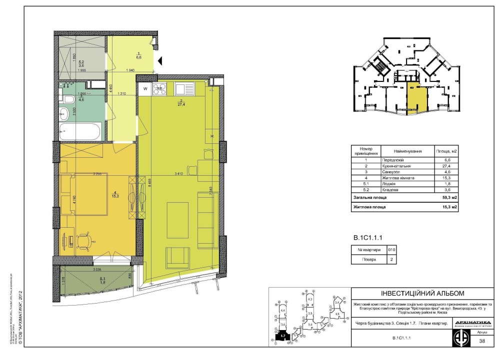 • Общая площадь 59.2 м2
