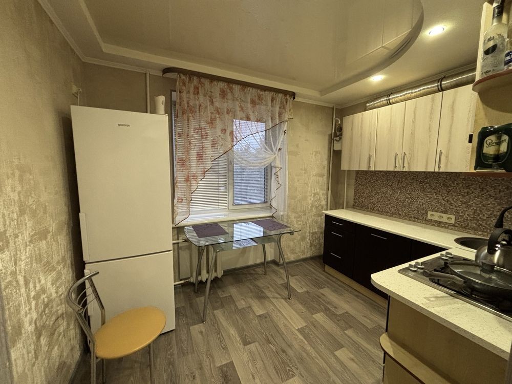 Простая, но чистая и по-домашнему комфортная квартира со всей мебелью включая двухспальную кровать и диван. Возможно комфортное заселение для 3-х человек(пара плюс один). Чистая постель и полотенца, холодильник, вся посуда, горячая вода(новый бойлер), интернет wi-fi, телевизор(кабельное). Цена посуточно 450-600 гривен в сутки зависит от количества дней и человек. Командировочным выдааю документы.