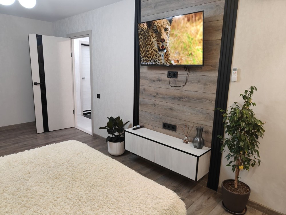 У квартирі свіжий ремонт. Є все необхідне для комфортного проживання (холодильник,фен,пральна машина, кондиціонер, смарт TV43 ,посуд, білизна, мікрохвильова піч, бойлер). Квартира не прокурена, чиста . Поблизу супермаркет, ринок, автостоянка, В будинку відділення нової пошти, перукарня.