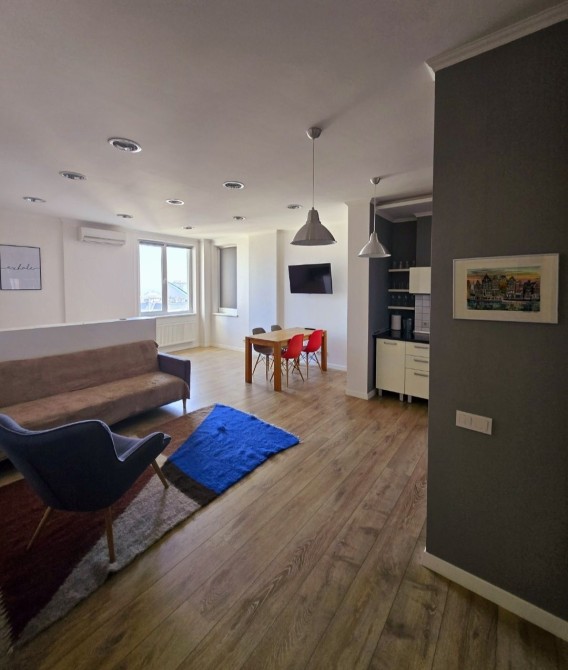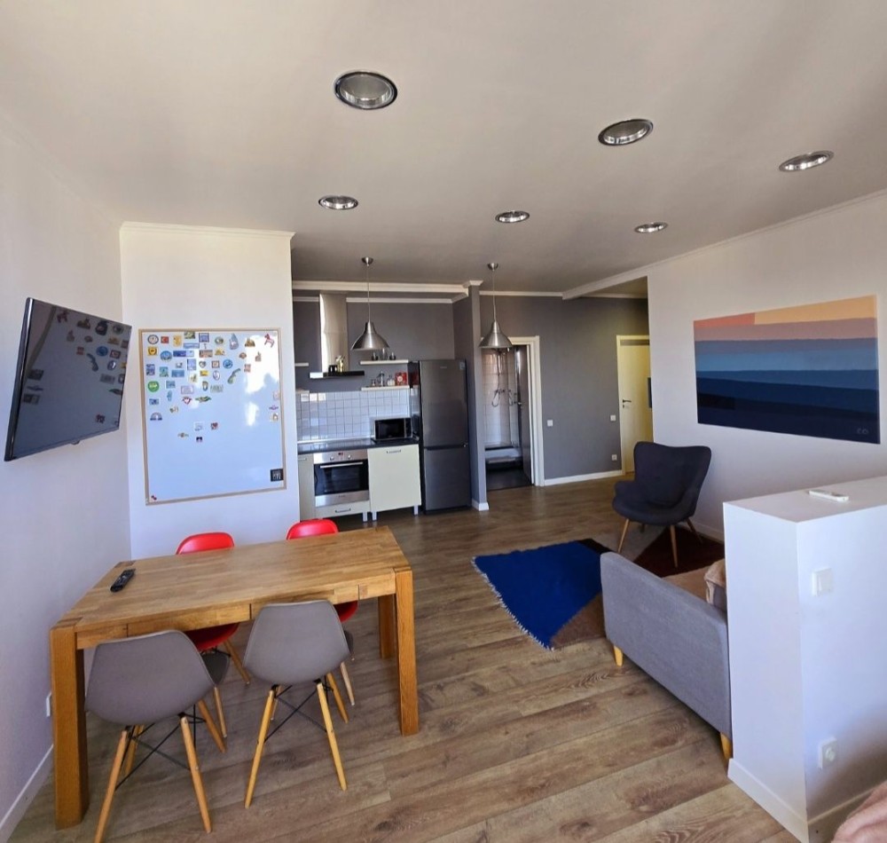 В апартаментах: кондиционер, одна двухспальная кровать, диван -кровать(идеально подойдёт для одного взрослого или двух детей). Постельное белье. -Телевизор, интернет.Прекрасный вид из окна.