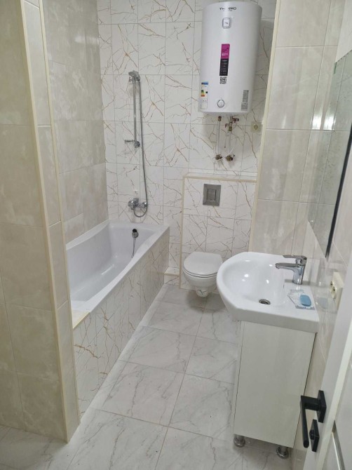 Санузел современно облицован. Сантехника и электрика ведущих европейских производителей.