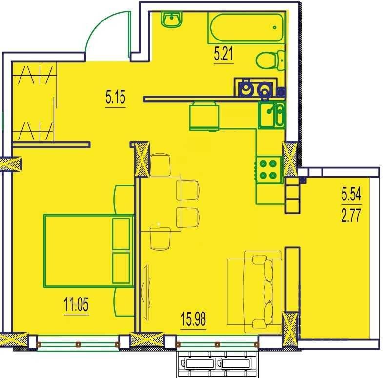 • Общая площадь 43 м2