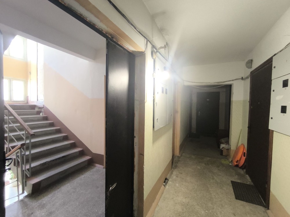 Тамбур на 4 квартиры, чистый подъезд, зелёный двор.