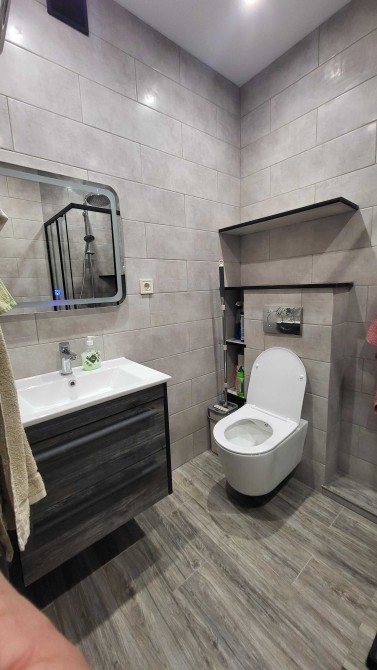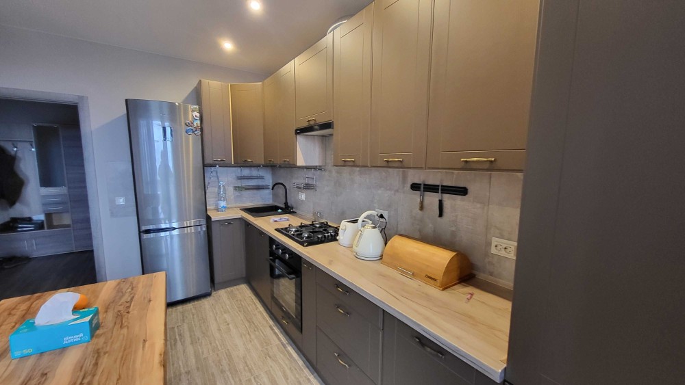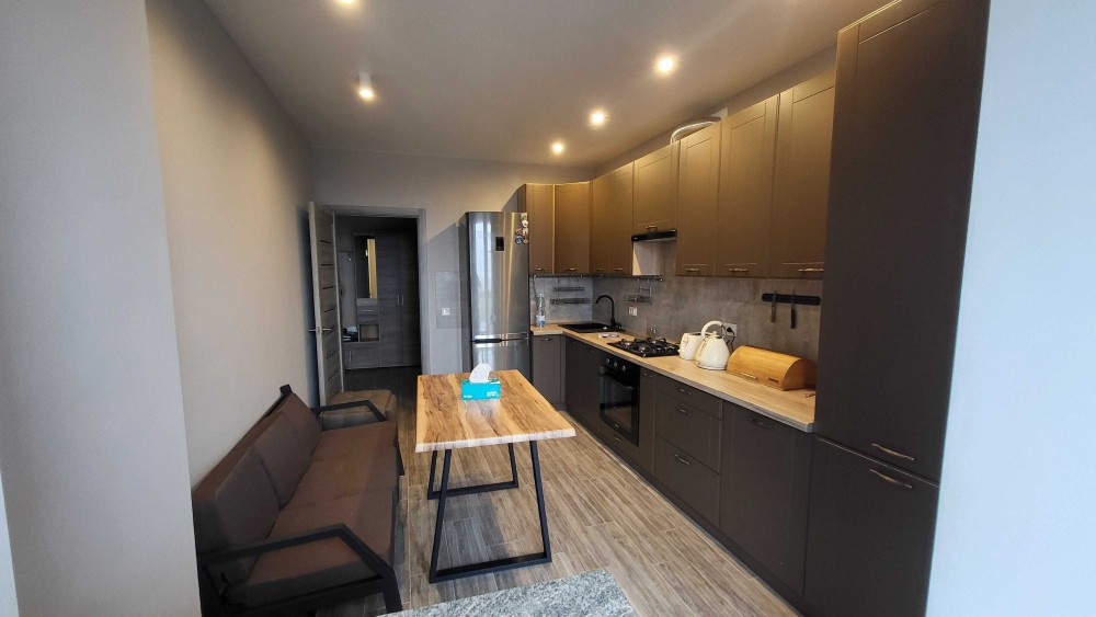 Квартира з якісним ремонтом. Новий будинок. Присутня побутова техніка і посуд. А саме холодильник з морозилкою, варильна поверхня, духовка, пральна машина, пилосос, праска, витяжка, телевізор. Тепла підлога на кухні, коридорі і у ванній кімнаті. Чудовий вигляд на озеро.