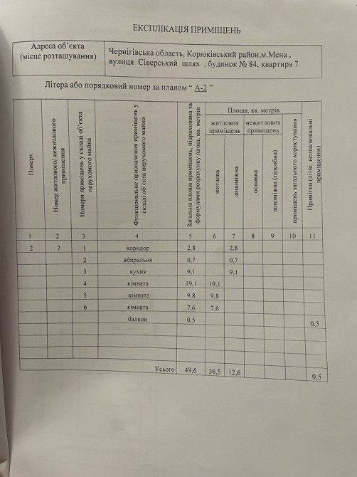 Продається квартира у місті Мена. Квартира трьохкімнатна 49,6кв.м