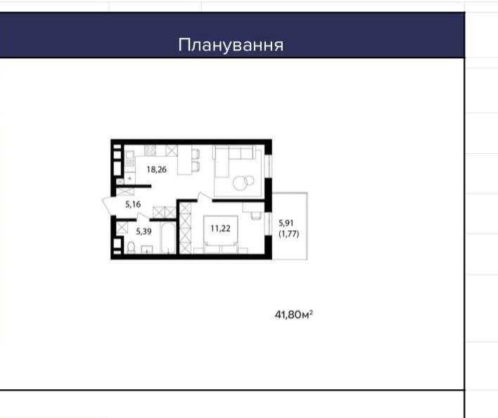 • Общая площадь 41.8 м2