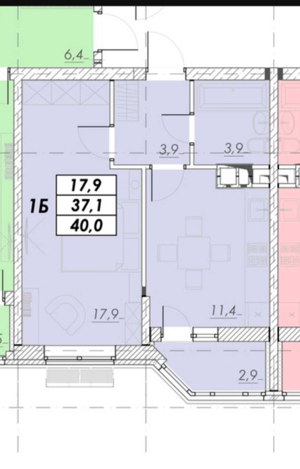 • Общая площадь 40 м2