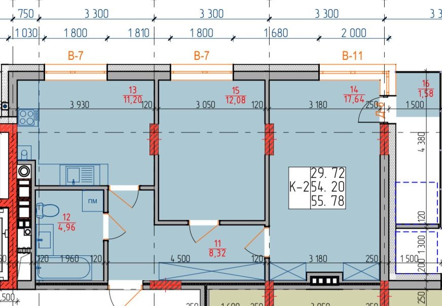 • Общая площадь 55.78 м2