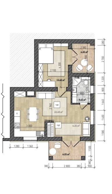 • Общая площадь 47 м2