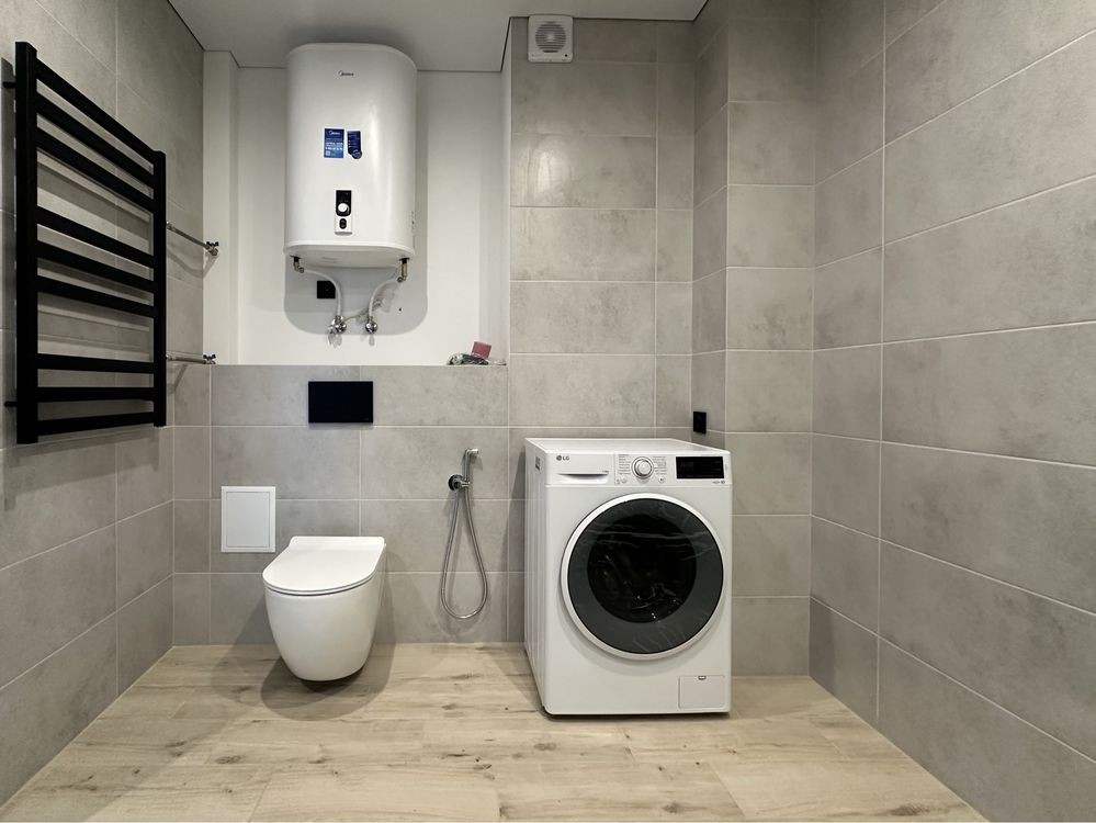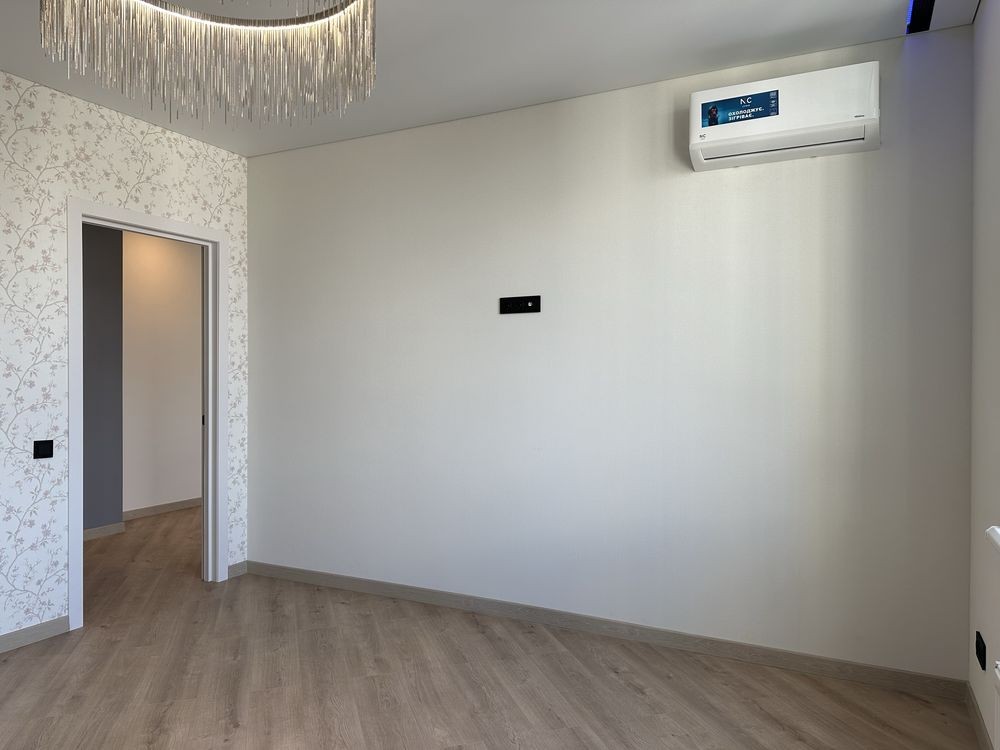 В квартирі встановлено якісну електро фурнітуру, твотарифний електролічильник (в квартиру заведено 15кВт), передбачено проєктом встановлення безперебійного електроживлення та встановлено 4 інверторні кондиціонери.