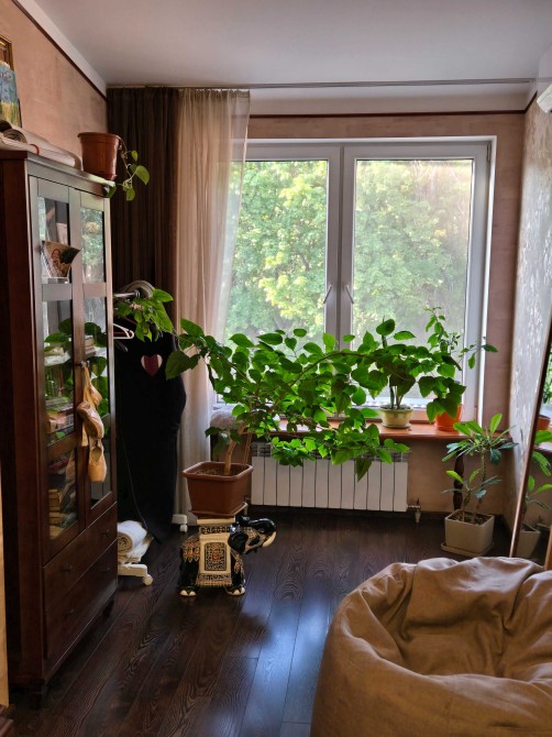 Напротив квартиры стоит 2-хэт строение, которое само по себе ниже. Из окон 3-го этажа - напротив ничего кроме высоченных деревьев. Весной и летом большое количество разнообразных птиц.