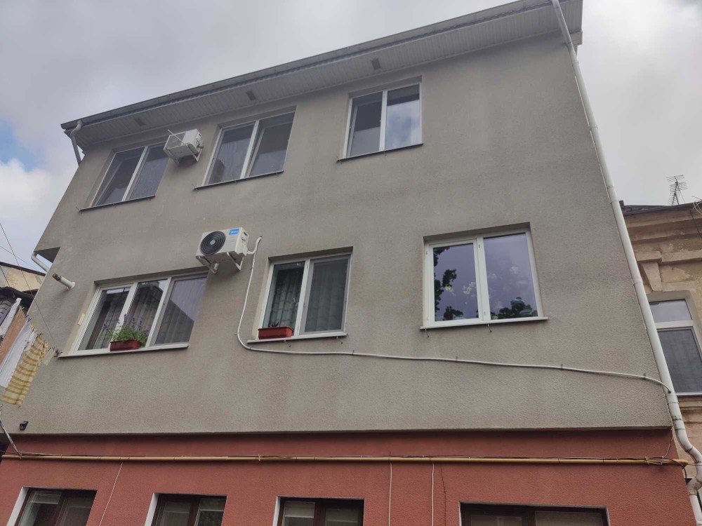 Квартира 5 комнат, гардеробная, кухня-столовая, 2 санузла - 135 кв.м. Все выстраивалось с ноля в 2012 году. Из "старого" остались только несколько несущих стен первого этажа из толстого ракушняка. Все остальное сделано абсолютно новое - частично стены первого и полностью стены второго этажа, все перекрытия, крыша. Все делалось по разработанному проекту. По нему же и выдавались документы о регистрации нового объекта недвижимости.