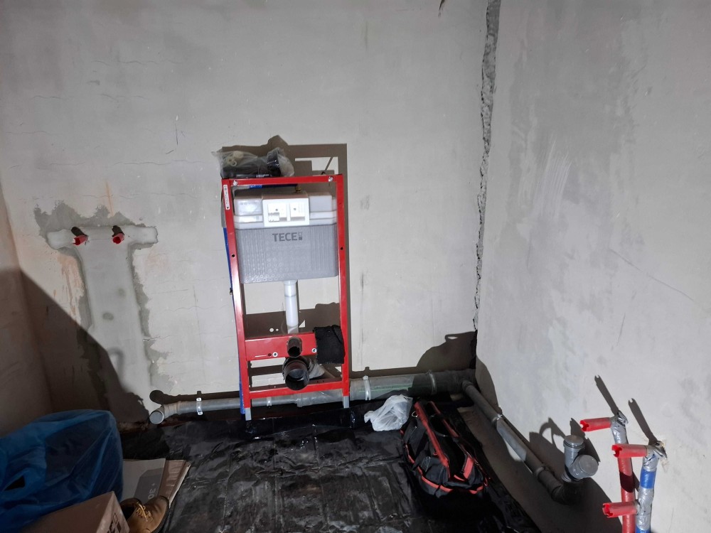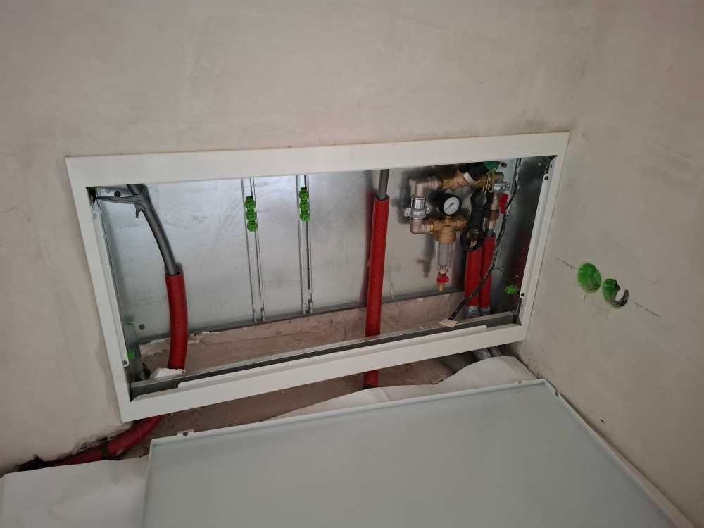 В санвузлі встановлені інсталяція, виводи під ванну з тропічним душем, виводи під рушникосушку та умивальник. Також для безпеки є редуктор тиску води. А для зручності заведена фільтрована система питної води в кожну квартиру на весь будинок.